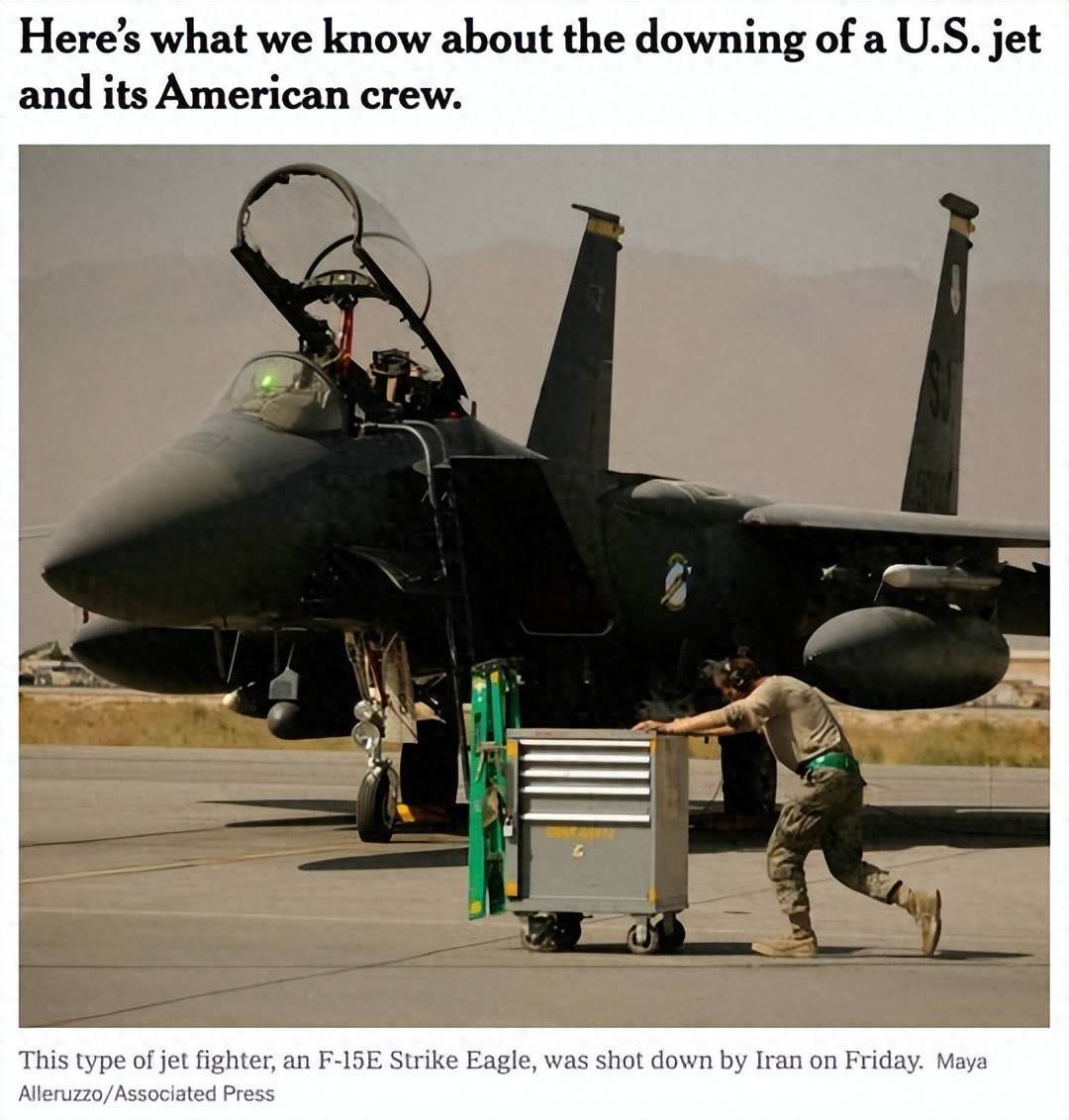 △《纽约时报》报道,一架美军F-15E战机在伊朗西南部被击落,这对特朗普政府来说是一次挫败。
